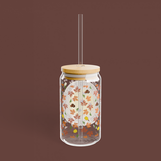 Happy Hour - Glass Can Cup w/Bamboo Lid & Straw
