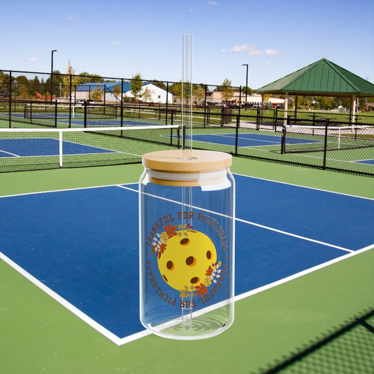 Glass Can Cup - THANKFUL for Pickleball & Iced Coffee