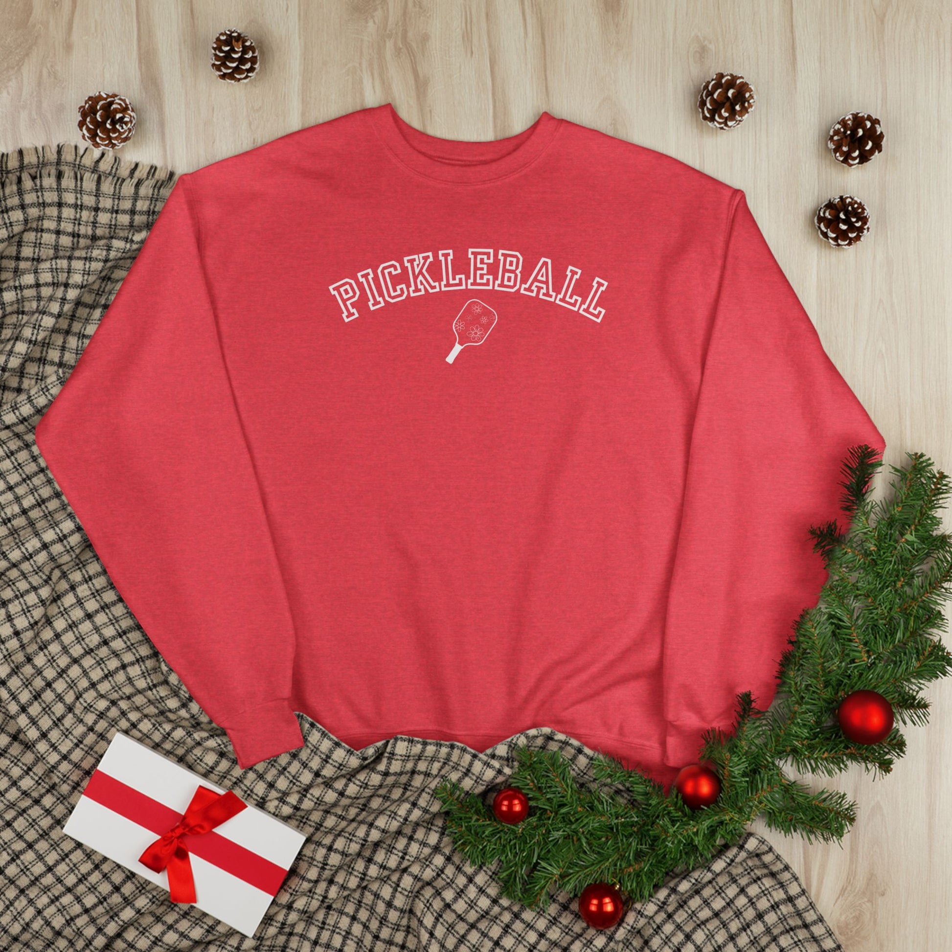 Meet your new go-to court-side essential — the Classic Pickleball Crewneck in heather red.